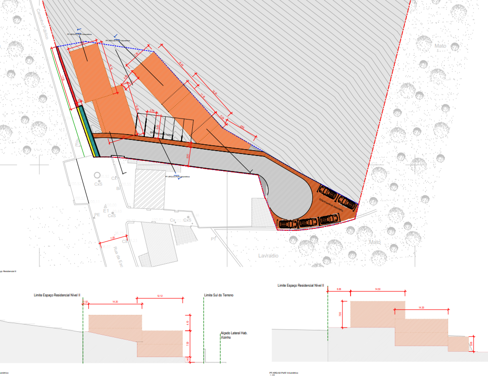 O objetivo foi maximizar o potencial construtivo do terreno dentro dos constrangimentos urbanísticos aplicáveis, conciliando densidade, exequibilidade construtiva e viabilidade económica. O estudo analisou diferentes cenários volumétricos, estratégias de acesso e organização espacial, considerando a topografia e a envolvente natural.