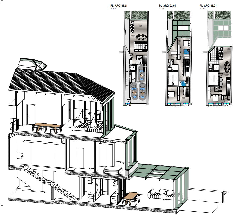 Situado num dos bairros históricos do Porto, este projeto transforma uma antiga casa de família em dois apartamentos contemporâneos, exemplificando a fusão entre reabilitação adaptativa e vida moderna. A abordagem arquitetónica dá primazia à luz natural, com fachadas envidraçadas e aberturas estratégicas que inundam os interiores de luz, promovendo conforto e eficiência energética.