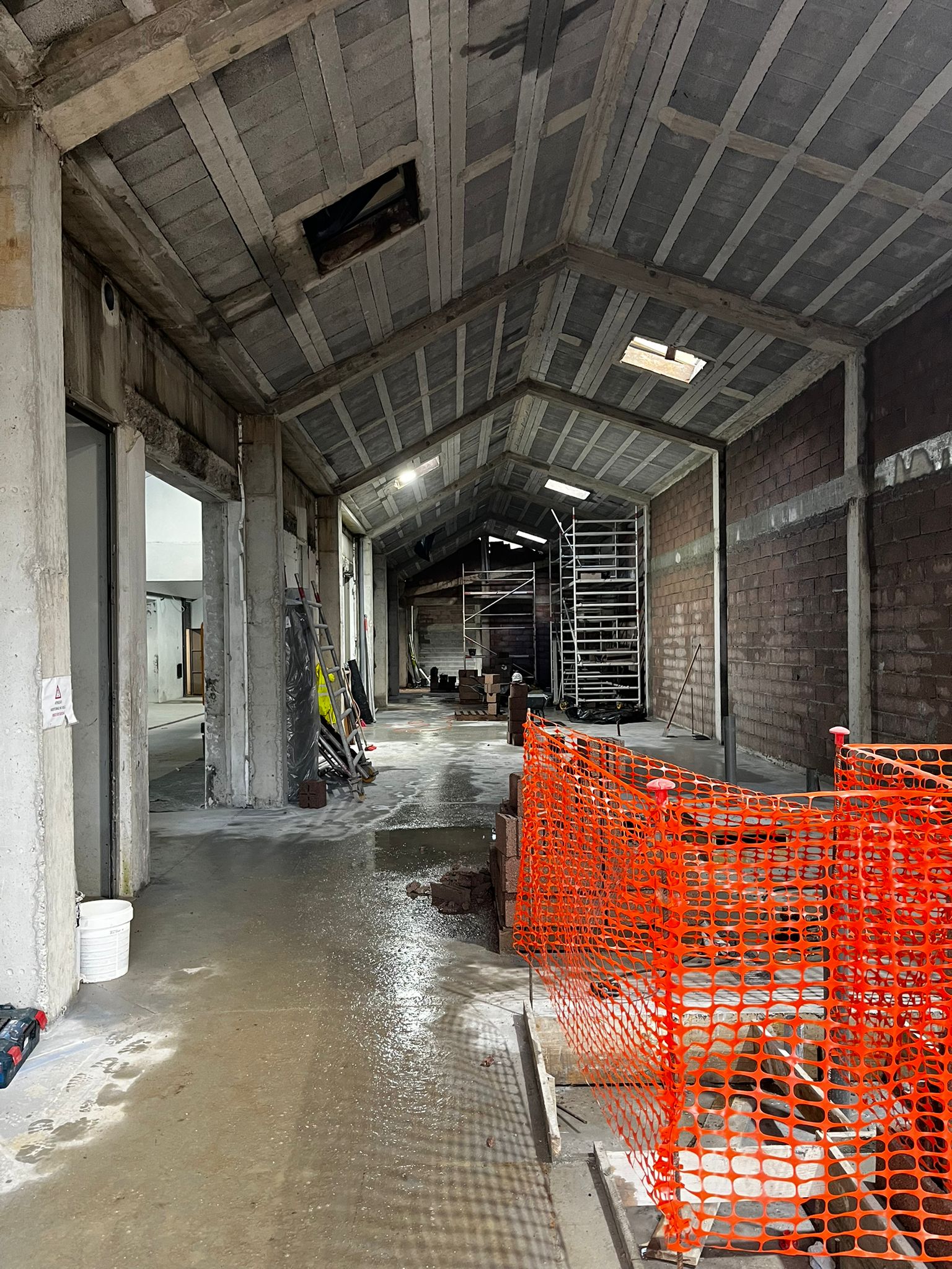 Em vez de uma reconstrução integral, o projeto adotou uma estratégia de transformação arquitetónica controlada. A estrutura da nave foi adaptada para suportar uma nova configuração de cobertura, possibilitando maior altura livre, melhoria da ventilação natural e introdução de claraboias para reforço da iluminação natural. Estas alterações qualificam significativamente o espaço interior, mantendo a integração urbana e formal do conjunto edificado.